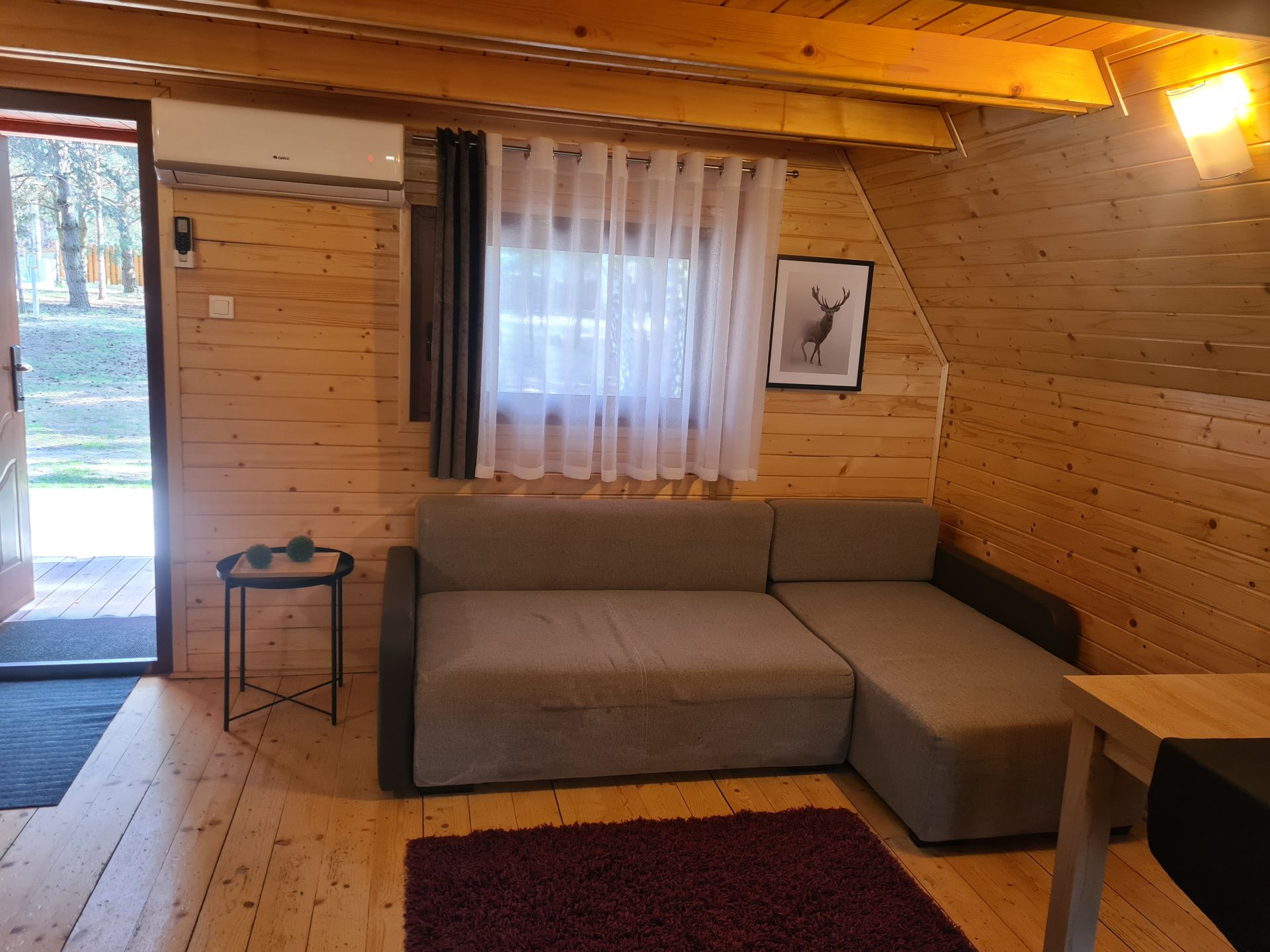 Część dzienna wyposażona jest w TV i radio z CD. Z części dziennej jest bezpośrednie wyjście na taras i ogród. Domek posiada ogrzewanie elektryczne.