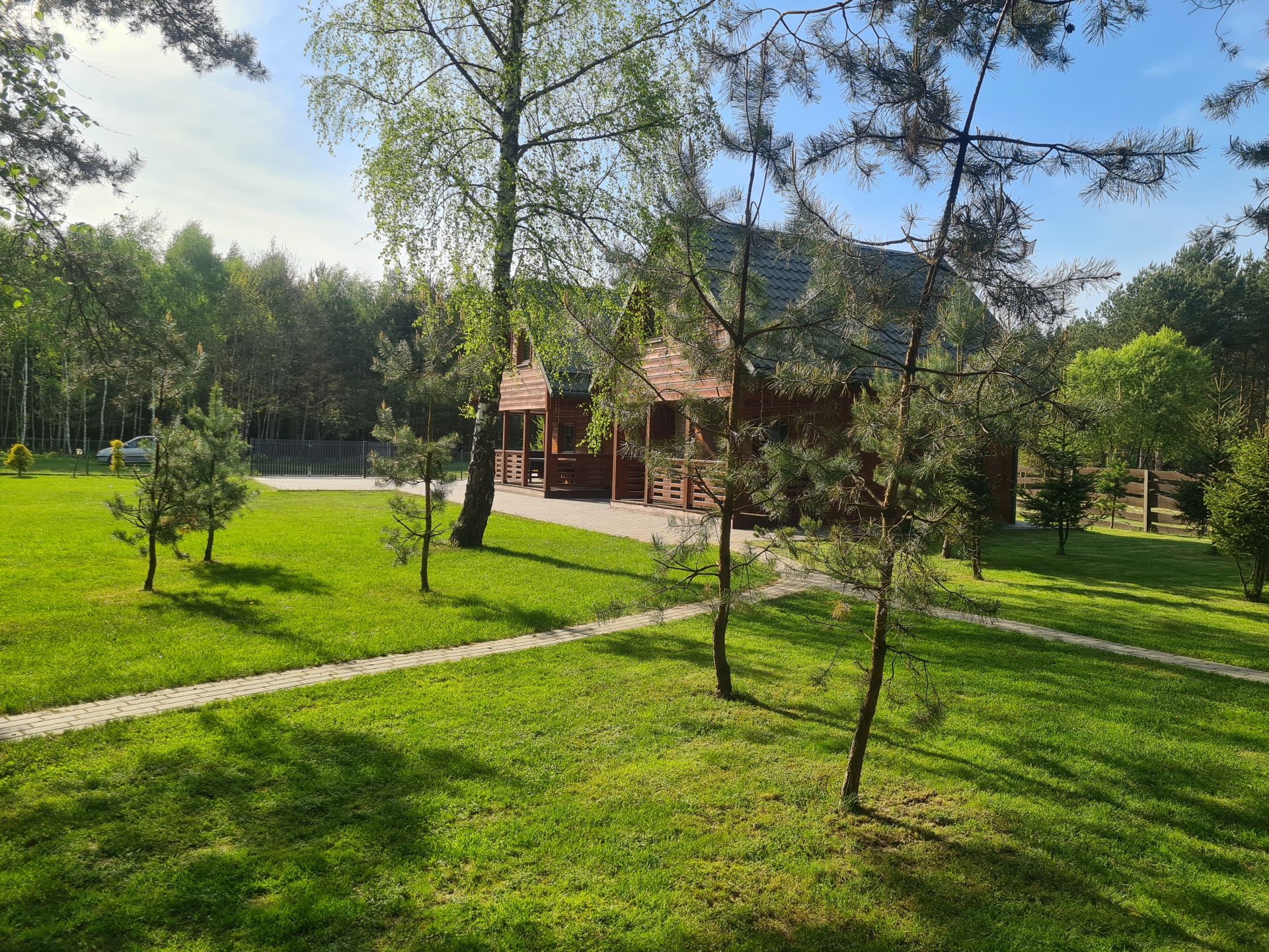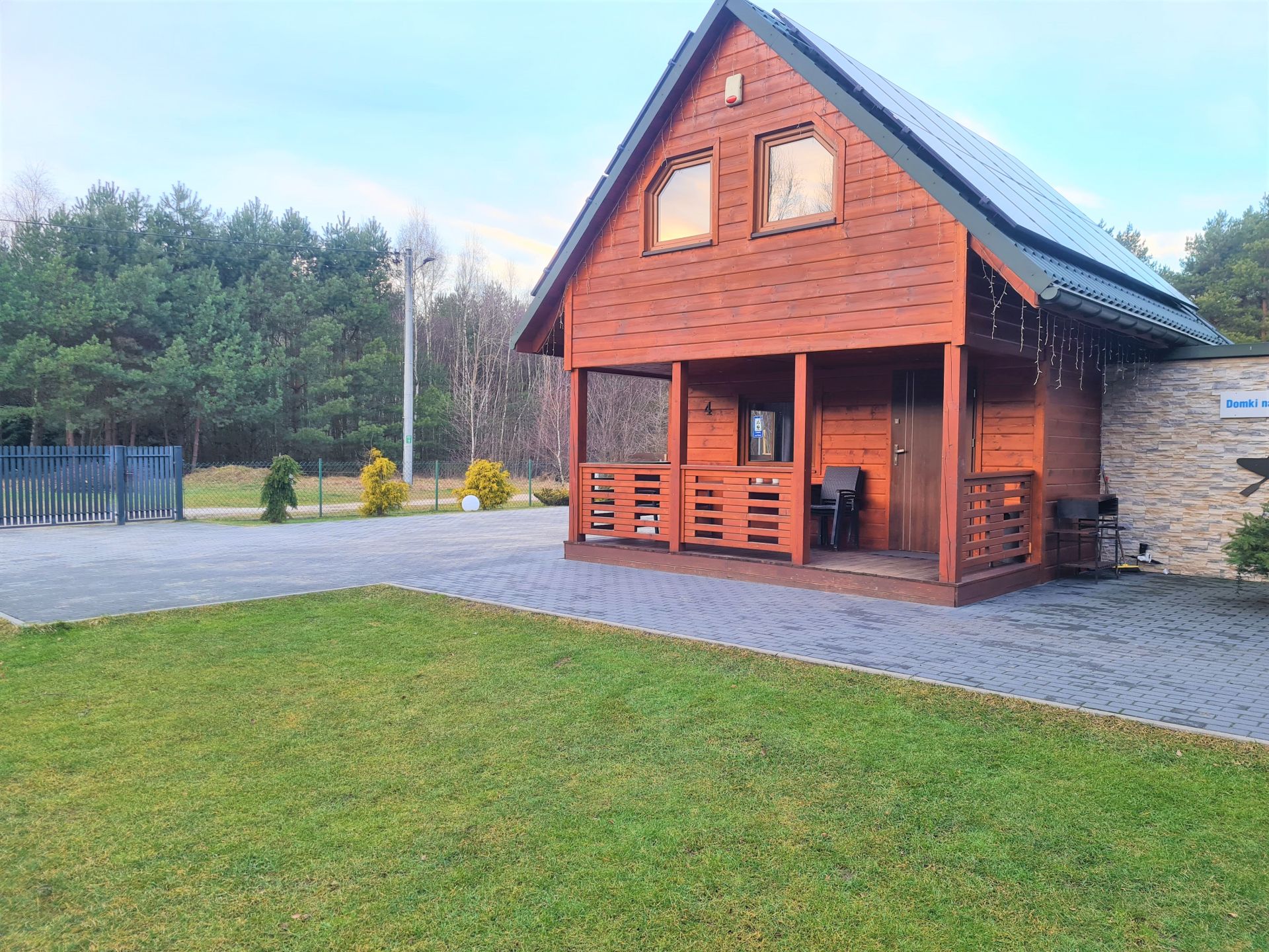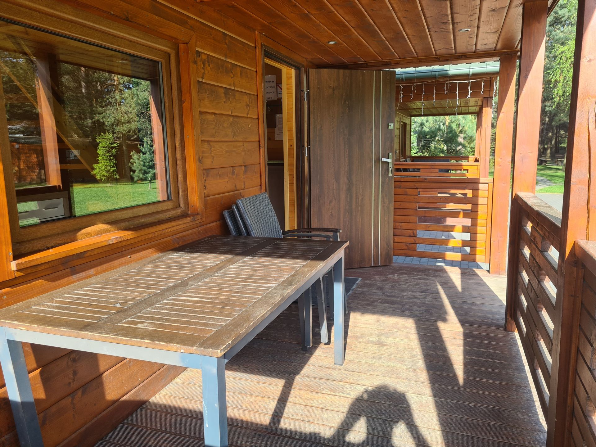 Jeden z  5 domków, posiada taras z widokiem na las.