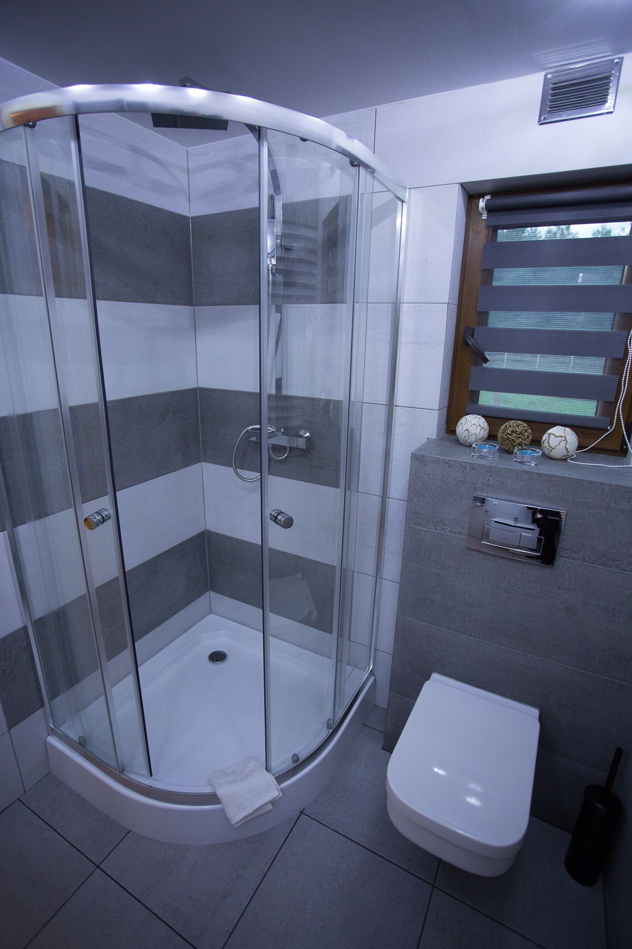 Domek ma powierzchnie 70m2. Na parterze znajduje się przestrzeń dzienna z aneksem kuchennym oraz wydzielona łazienka z prysznicem. Aneks kuchenny jest w wyposażony w płytę grzewczą, lodówkę, czajnik elektryczny, naczynia, garnki.